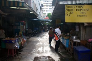 2. While not necessary, having a visa application form before hand will save you LOTS of time. Walk 100 meters from the entrance until you find a yellow sign at an alley that reads “Photo & Copy Fax”. Proceed down the alley to this shop and ask for an application. For just 8 baht ($0.27), they’ll not only provide you with the gift of time, but they’ll also photocopy your passport!